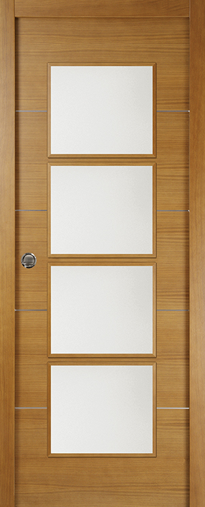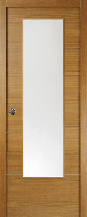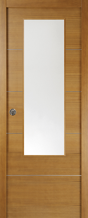 Eskuz egindako atea tindatutako haritz xafla naturalean.