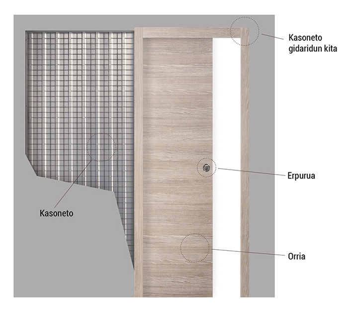 Ate laminatua. Injekzio berezia eta poro naturala akabera. Altuera handiko erresistentzia.