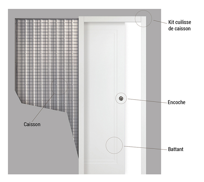 La porte entre à l’intérieur de la cloison.